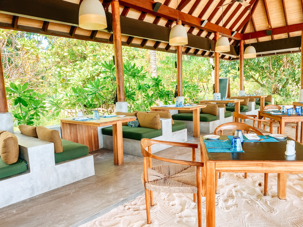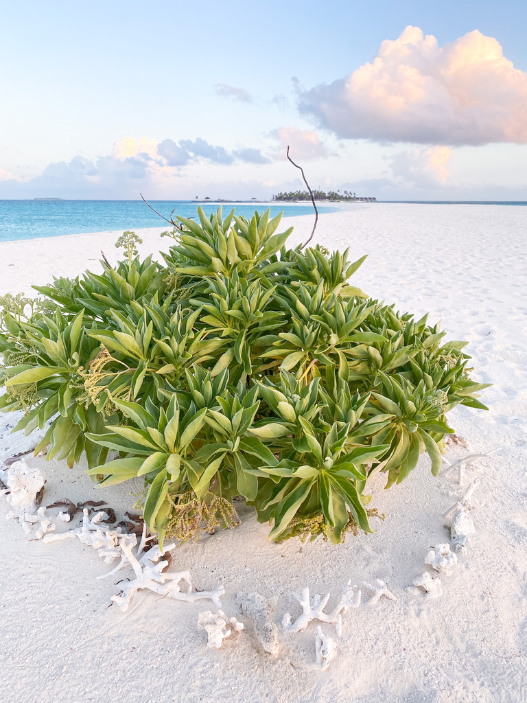 Ich habe selten so einen wunderschönen weißen Strand gesehen. Hier glitzert das Meer in Türkisblau mit der Sonne um die Wette. Der Anblick ist genauso, wie ihr euch die Malediven aus dem Fernsehen vorstellt: Wie im Paradies. Dazu die saftig-grüne Vegetation rund um die Beach Villen und das Innere der Insel.