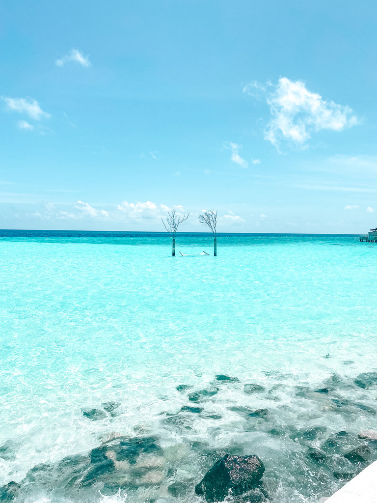 Auf den Malediven ist das Wasser ungelogen so intensiv türkisblau und sauber, als hätte jemand einen Instagram-Filter darüber gelegt. Mein Mann dachte, ich habe einen an der Waffel, weil ich das nicht fassen konnte – aber gut er war ja auch schon locker 15 Mal auf den Malediven. Ich als Malediven-Frischling dagegen, habe so ein klares türkisblaues Wasser noch an keinem Hafen der Welt gesehen.
