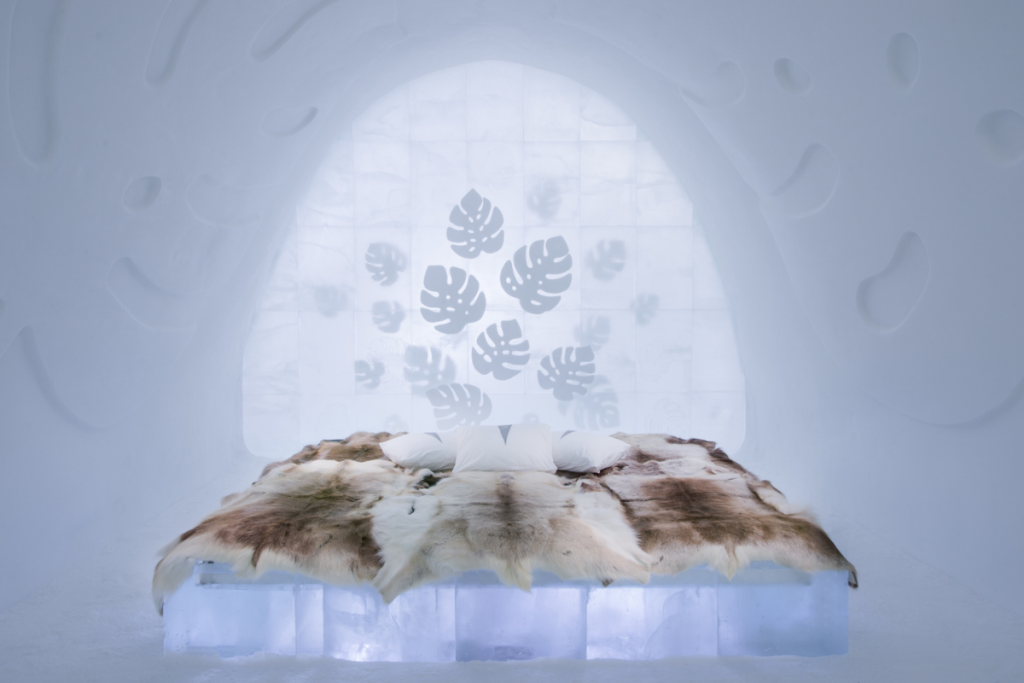 Das Eis verwandelt das weltweit erste und größte ICEHOTEL in einen Designtraum aus Licht, Eis und Schnee. Die Kunst ist allgegenwärtig und namenhafte Designer tragen jedes Jahr zu einem neuen Erscheinungsbild bei.