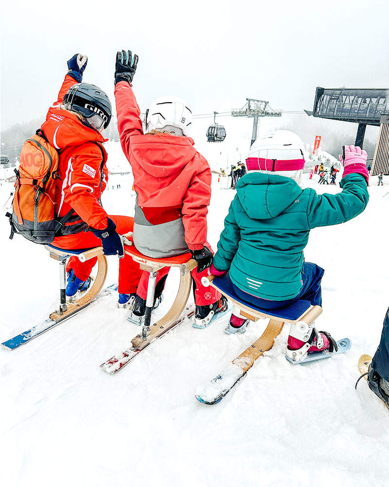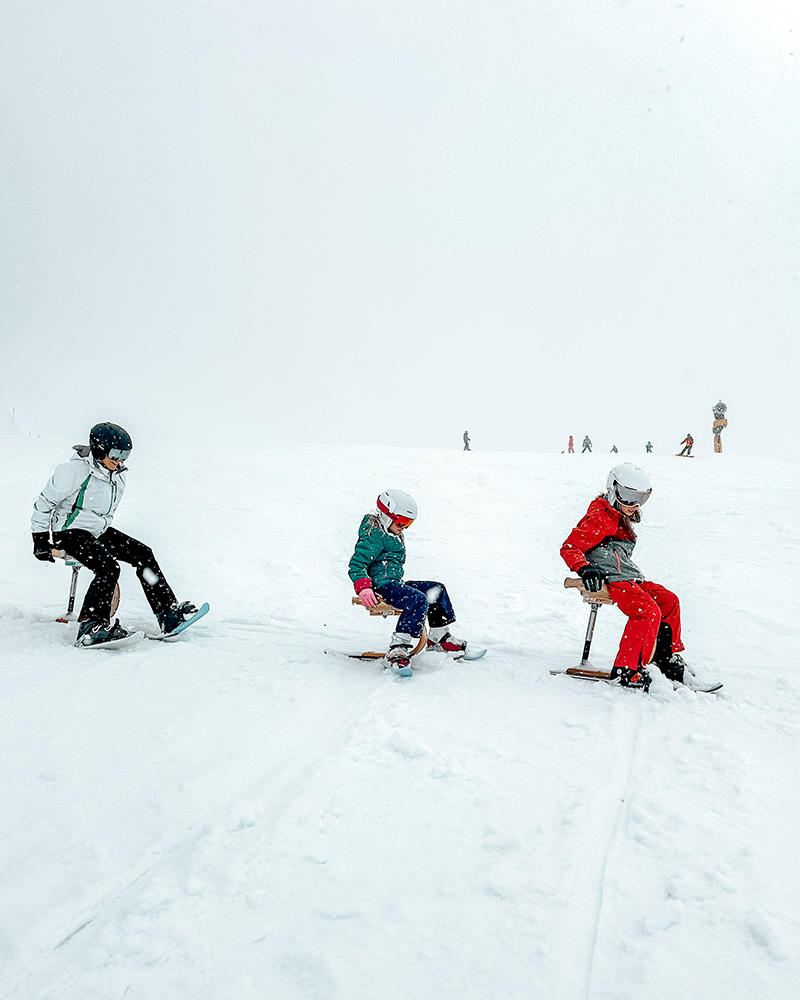 Ein Highlight für uns ist auf jeden Fall die Abfahrt entlang der Piste im Sitzen auf dem Snowfox, einer Art „Melkschemel“ mit Kufen und auch das Snowbike ist wirklich lustig. Gemeinsam mit Nicole von der Skischule Serfaus durften wir zwei Stunden dieses besondere Erlebnis ausprobieren und wir hatten schon lange nicht mehr so viel Spaß auf der Piste. Ihr bekommt neben dem Snowfox noch je zwei Kurzski unter die Schuhe (auch Kinder und Nicht-Skifahrer) können das problemlos fahren) und dann geht es los. Gelenkt wird über Gewichtsverlagerung. Es dauert ein paar Minuten und dann haben wir uns an das außergewöhnliche Fahrerlebnis gewöhnt und genießen es, sitzend die Piste hinunterzufahren, einen Abstecher durch die wunderschöne Kinderschneealm mit Tunneln und Abenteuerstationen zu machen und entspannt wieder mit dem Lift hochzufahren. Dabei werden Snowfox und Snowbike an den Seiten vom Liftpersonal aufgehängt. Ihr müsst euch nur daran gewöhnen, mit den Kurz-Ski aus dem Lift hinauszugleiten ;-).