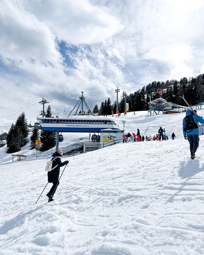Auch die nagelneue Komperdellbahn mit ihren 10er-Gondeln ist der Hammer. Leise und schwerelos schwebt ihr den Berg hinauf. Die Ski oder das Board nehmt ihr mit in die Gondel, die extra unten pro Sitz einen Abtropf-Schlitz im Boden hat, in den ihr eure Ski sicher abstellen könnt. Mehr Komfort geht nicht, würde ich sagen.